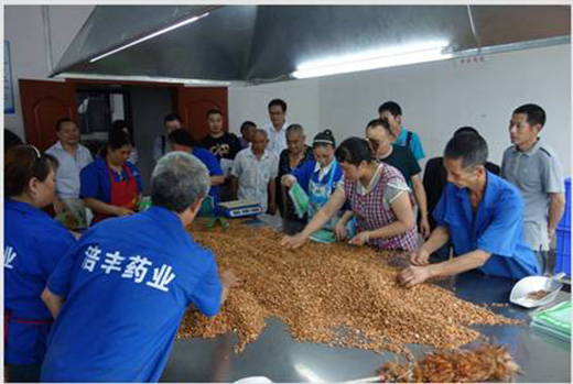 通過藥材種植、企業(yè)生產(chǎn)現(xiàn)場參觀,大家眼見為實(shí),堅(jiān)定了信心。在四川涪豐藥業(yè)有限公司的歡迎會(huì)暨中藥材種植培訓(xùn)會(huì)上,公司董事長鄒盛忠承諾,企業(yè)義不容辭支持扶貧攻堅(jiān),堅(jiān)持免費(fèi)提供種苗、技術(shù),包產(chǎn)品回收;公司副總梁國才為種植戶詳細(xì)培訓(xùn)了梔子、白芷種植技術(shù);東興區(qū)委統(tǒng)戰(zhàn)部、平坦鎮(zhèn)領(lǐng)導(dǎo)強(qiáng)調(diào),村干部和村民代表回去后要加大宣傳,把中藥材種植產(chǎn)業(yè)抓好抓實(shí)抓出成效,帶動(dòng)更多農(nóng)戶增收致富。